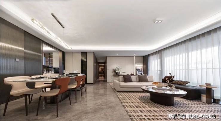 精工细节来看,还有岩板电视背景墙、定制成品餐边柜、主卧皮革硬包床头背景墙...精致感与奢华感直接拉满。
