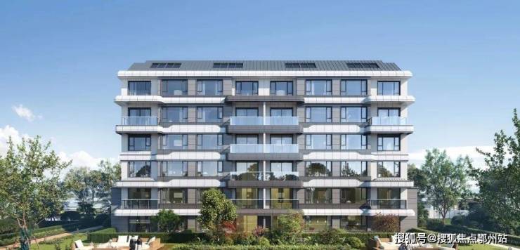晶幕高层楼栋,采用公建化立面,极简现代风格,阔景阳台、大面积玻璃,端庄大气。