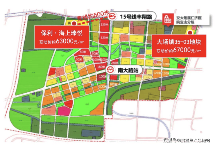 在2023年的第二批次土拍中,位于上海北中环带南大智慧城片区大场镇35-03地块,经过18家开发商参与竞拍的激烈竞争,最终以6.7万/㎡的联动价成交!这已经比今年首批次保利拿下的宝山区大场镇W12-1301单元05-04地块,即保利·海上瑧悦项目上涨4000元/㎡!