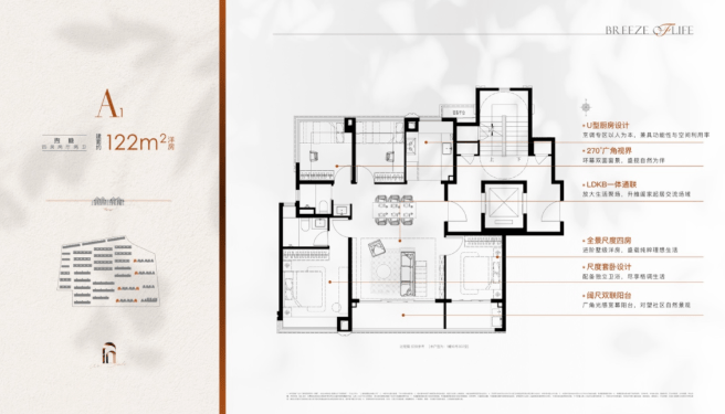 建面约139㎡精奢上叠,南向面宽同样达到了约9.2m、三开间朝南,首层全明设计,南北通透,面面瞰景,大尺度U型厨房,约2.2m的大岛台,搭配LDKB一体化动线,盛载亲情时光,温馨南向卧室搭配全景飘窗,满足家中长辈静心安居所需;