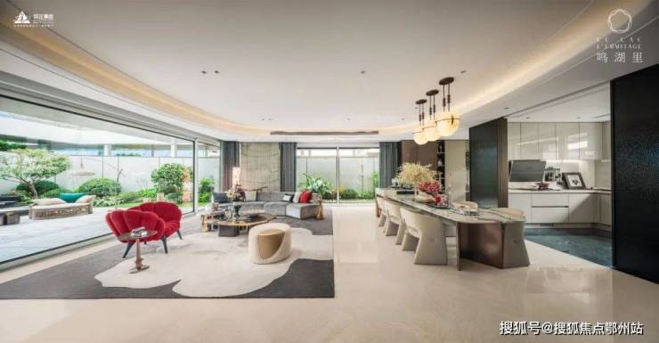 6扇通高约5.2米的落地玻璃,全景约500㎡的中心水景。