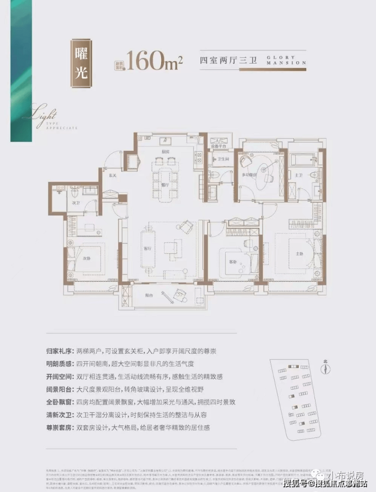 本批次项目推出了约140㎡4房2卫以及约160㎡4房3卫的房源,在奉贤新城这样的大户型非常臻稀。
