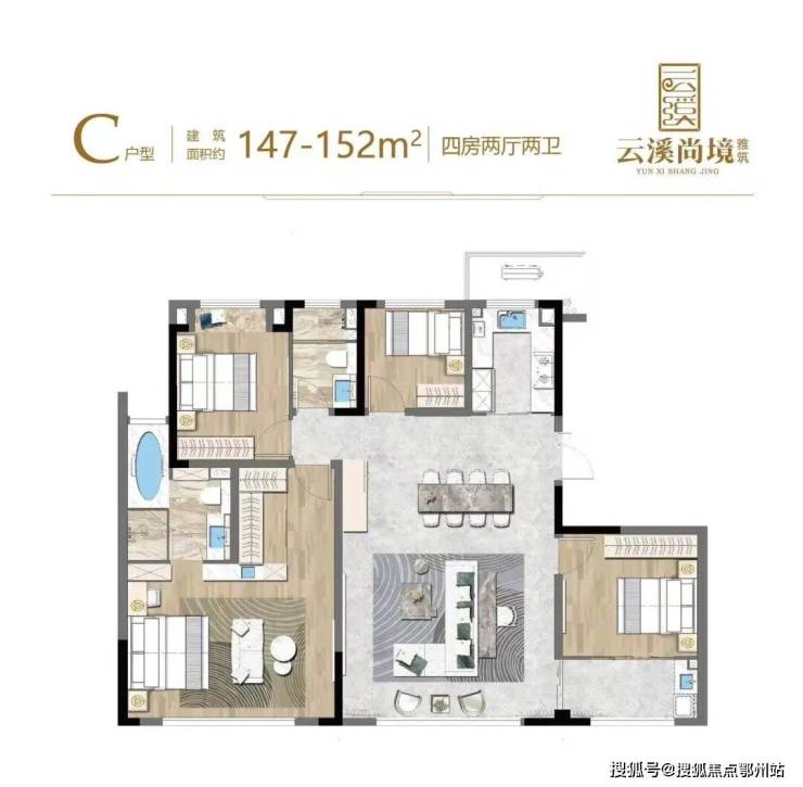 约147㎡王炸户型——4房2厅2位,近14.5米大面宽满足生活大师对日常的一切想象