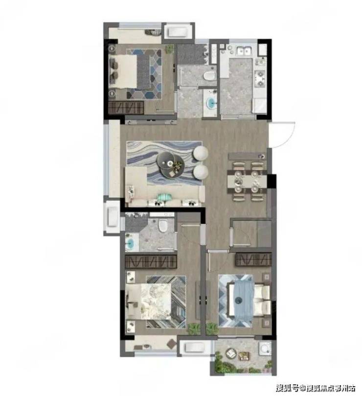 本批次房源的建筑面积段92.74-104.8平,其主力户型: