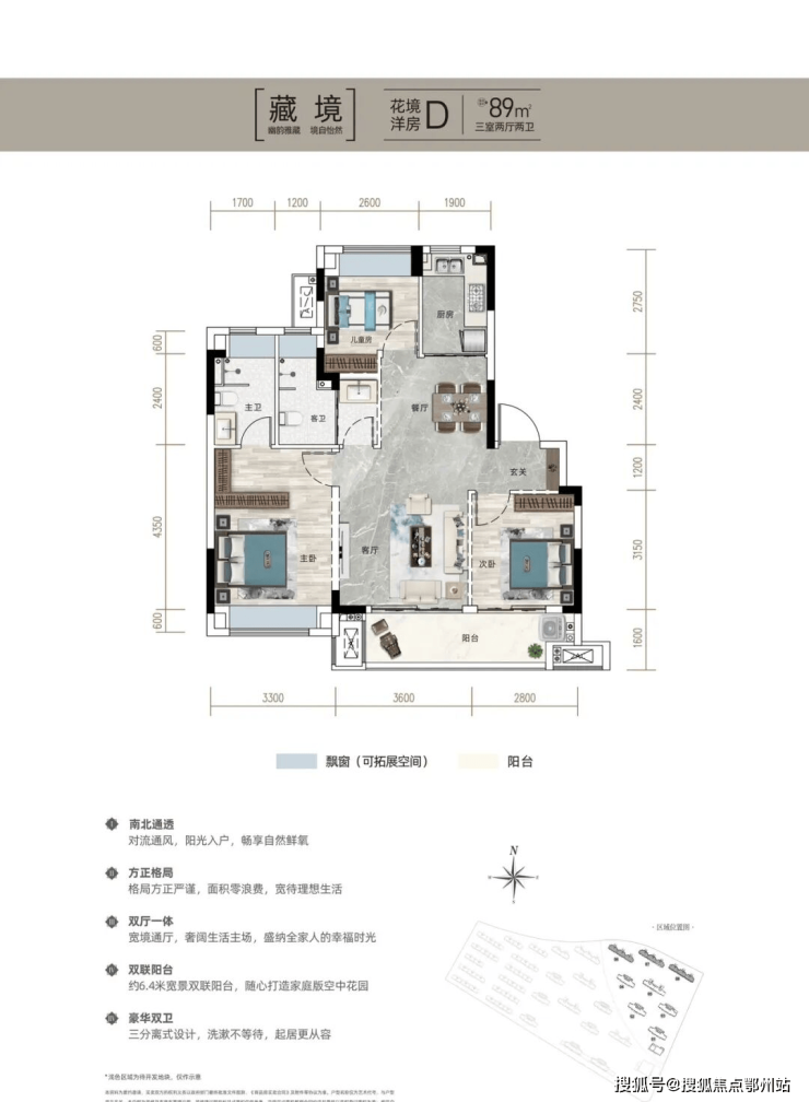 以领先市场的创新约89㎡藏品洋房、公摊低至17%,赠送面积得房率约92%;约98㎡—119㎡南北通透、电梯入户小高层产品,小高层打造区域内罕见2T2梯户比,专梯入户,保证私密度与尊崇感。采用南北通透户型设计,充分保证采光,以超高得房率的超前智造空间,领跑全区,敬献全城菁英。