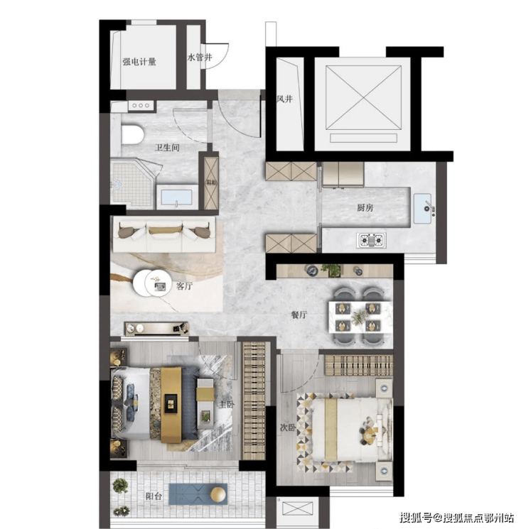 95㎡四室两厅:全明户型,功能分区优化