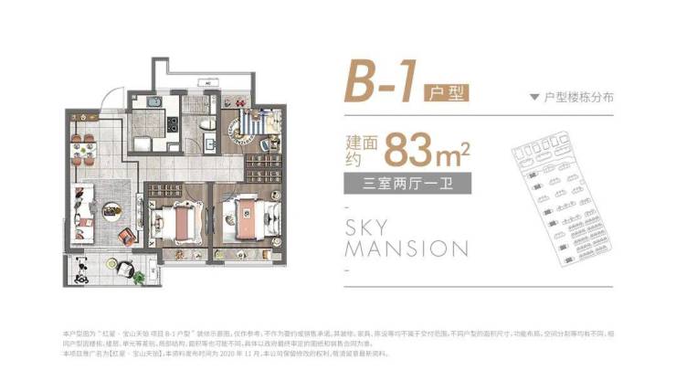 除了建面约89㎡的洋房, 建面约83~89㎡高层 户型也各有所长,均是三房设计,无论是从结构布局,还是空间利用皆相得益彰,承载一家人的美好生活。 高层户型如下:
