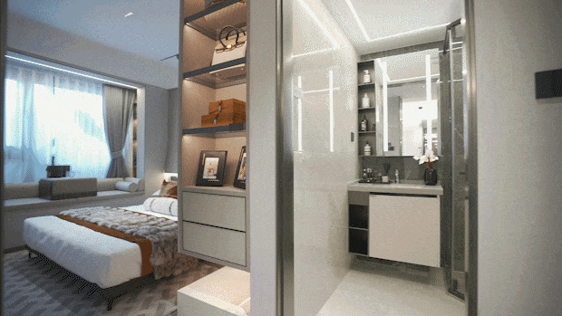 还有 270°观景阳台,阳台外窗采用大面积窗墙比,室内整体采光面、亮度、通风效果得到提升。主卧套房,主卫带飘窗。