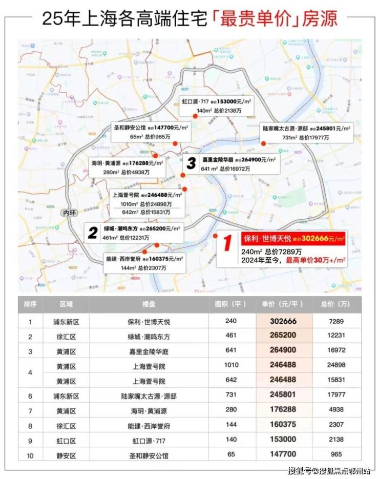一线滨江世博板块的保利世博天悦以约30.27万/㎡拔得头筹,成为2025年上海豪宅市场的 新晋王!