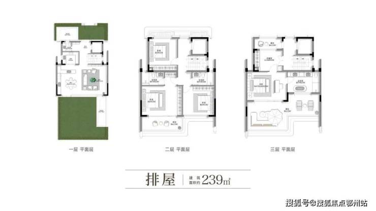 【户型面积】排屋:建面约217㎡-299㎡;合院:建面约284㎡;叠墅:建面约198㎡-209㎡
