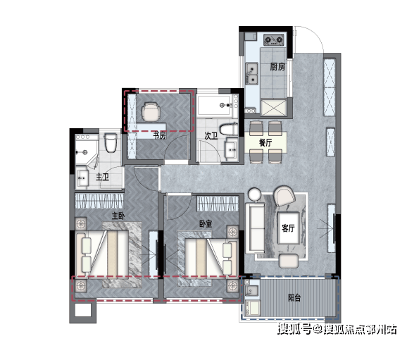 除了常规的卧室、餐客双厅,户型还设计了 独立的书房 ,让工作学习的你也能拥有舒适的专属空间。