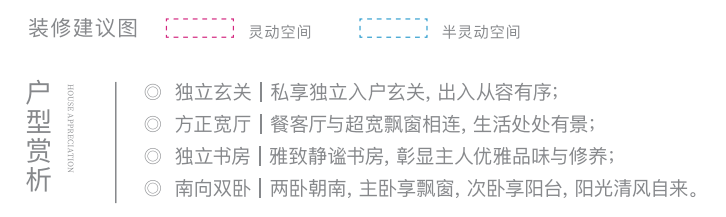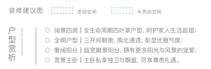 四叶草格局基本一致,但更为紧凑些,给予不同空间需求和置业预算的家庭多个选择 ,但同样能全面呵护家人的生活起居。