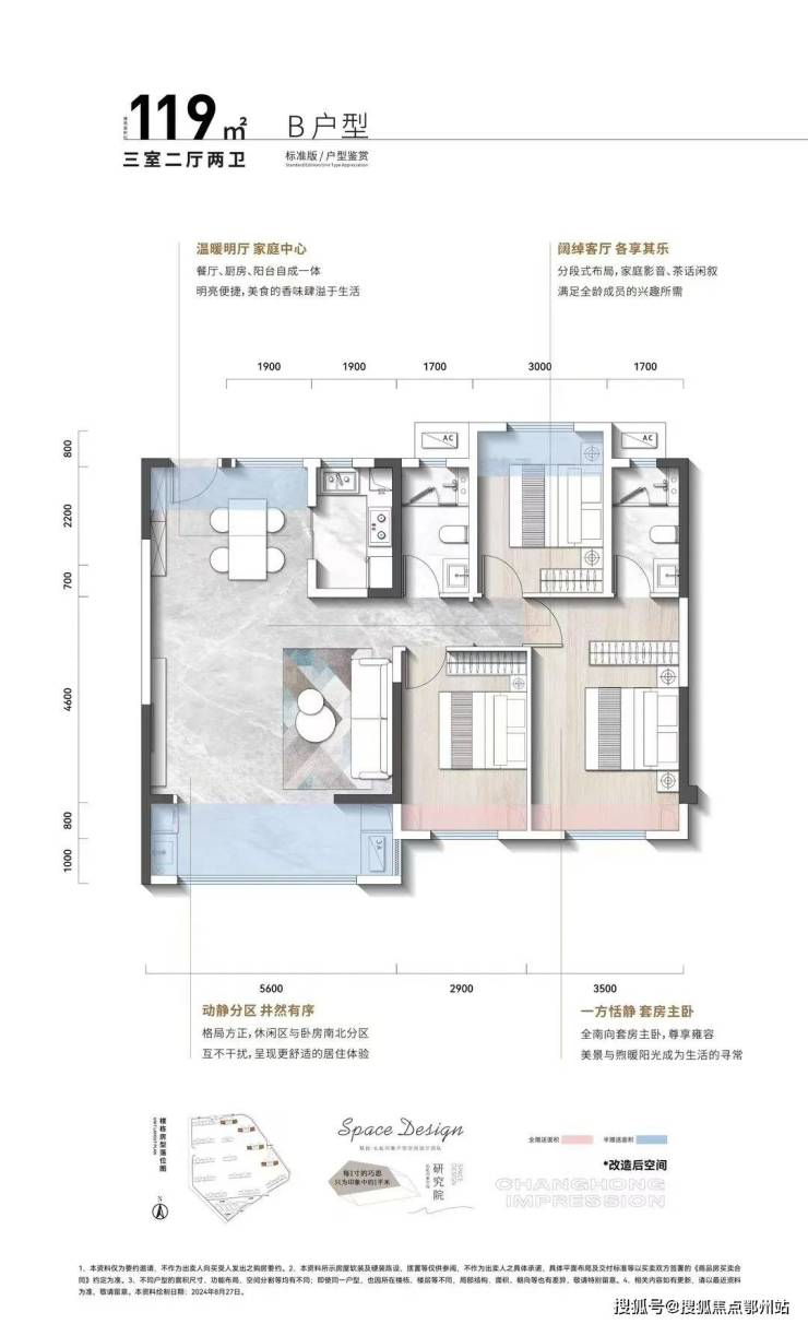 联投·长虹印象 项目推出建面 约105-163㎡小高层/高层 ,也是全系南向双联阳台。约105㎡小户型阳台开间就做到约6.5m,场景力MAX;大户型阳台尺度则更加阔绰。