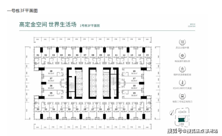 约245.8米高的摩天大楼,梅溪湖北岸最高标志性建筑。楼体采用全玻璃幕墙结构,铸就奢阔景观视野。结合精奢平层、百变LOFT、顶级大平层等多业态发展,引领区域经济红利。