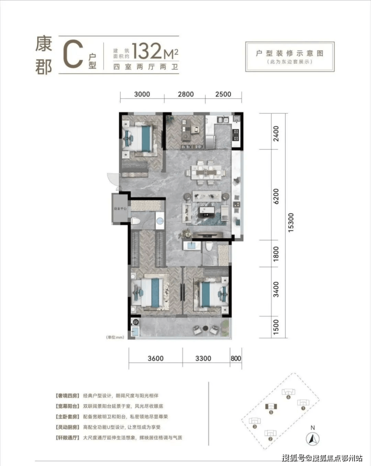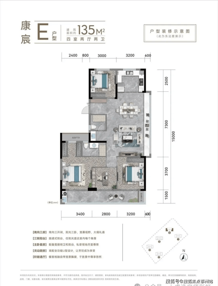 建面约123-135㎡宽境四房