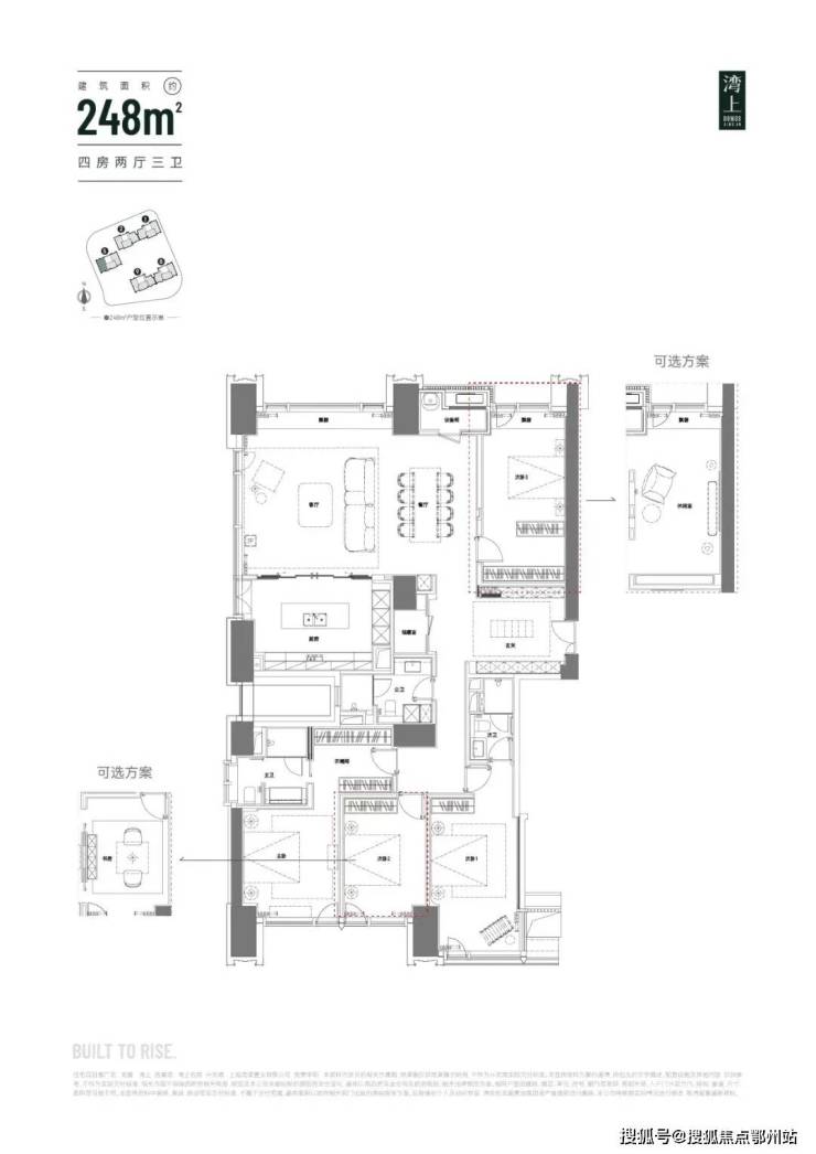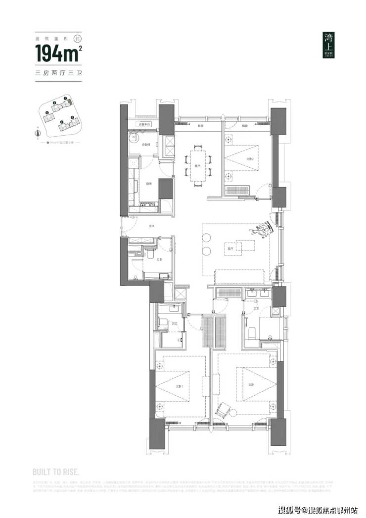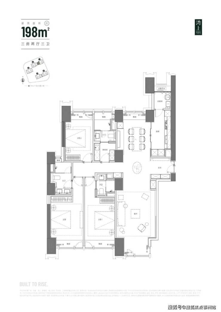主推建面约 150 - 256㎡纯粹大平层,三梯三户,层高 3.3 米,空间开阔大气。