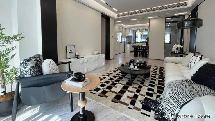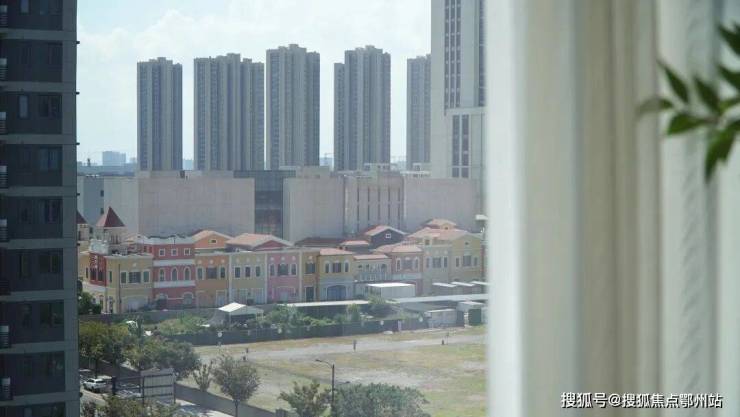 站在 万城·杭悦府建面约101㎡样板房的阳台上, 约300米外奥特莱斯的璀璨繁华尽收眼底,南向三开间的阳光倾泻而入,将客厅的空间镀上温暖光晕。
