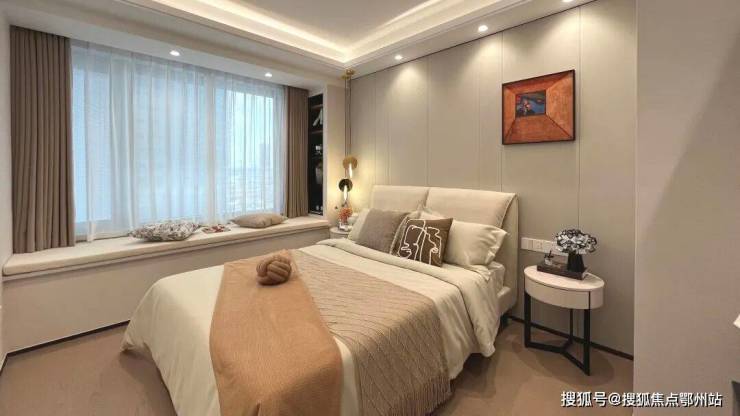 次卧自带南向观景飘窗,是生活的温柔陪伴,铺一层软垫、摆上靠枕,房间不仅仅是休息空间,也是休闲好选择。