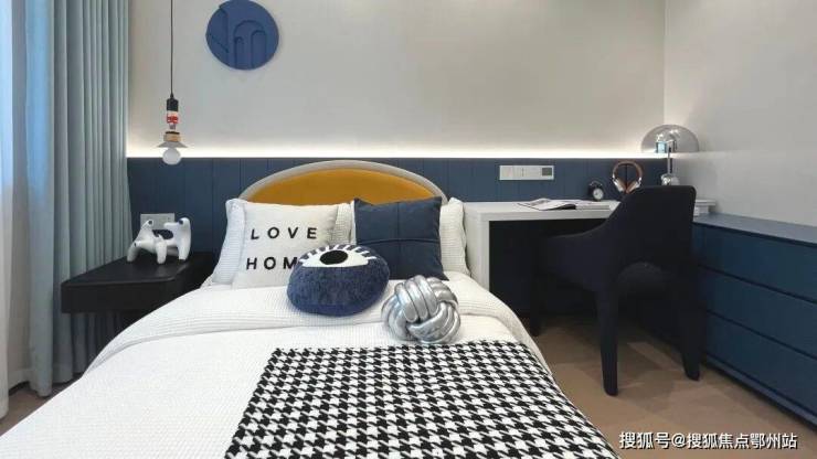 北侧儿童房近邻次卫,干湿分离设设计从容家庭起居,儿童房的面积也格外友好,儿童床+书桌组合轻松容纳。