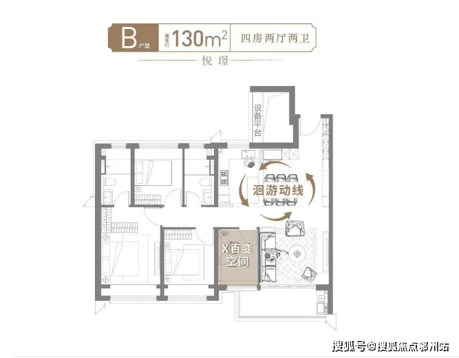 全景面宽+无界通厅+高附加值+收纳天花板,130㎡的面积直逼140㎡的尺度感!