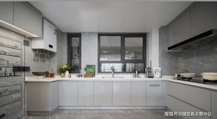 厨房面宽升级,加上家政间直接与客厅等宽约6.1m,北向搭配超大窗视野,采光通风更优越的同时,也能让在厨房忙碌的人多一份观景的惬意。