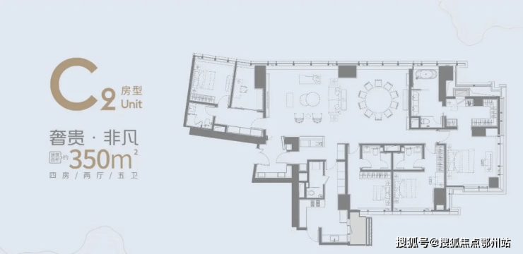 C1户型 建面约312㎡四房两厅五卫