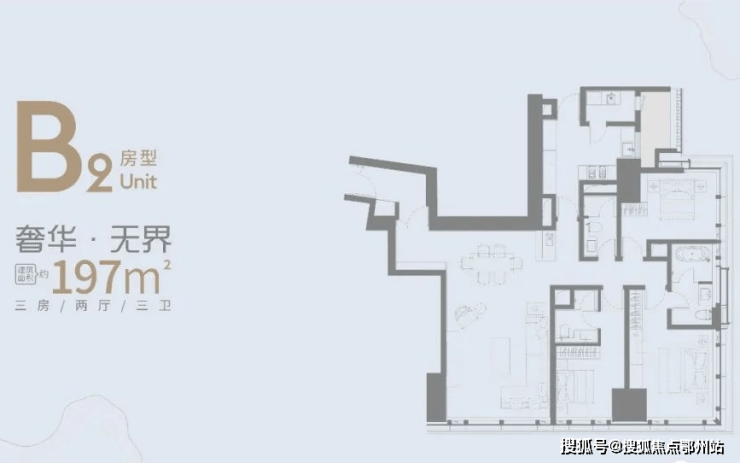B1户型 建面约223㎡三房两厅三卫