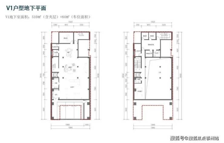 1、v1户型:地上3层约847平、地下2层约510平
