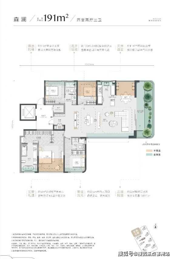 ④极致得房率:约16-22平双层挑空花园、约7.4-9.3平电梯前室、多个阳台及飘窗,可优化空间相当丰富,加上本身较低的合同公摊,优化后实得面积超级震撼。