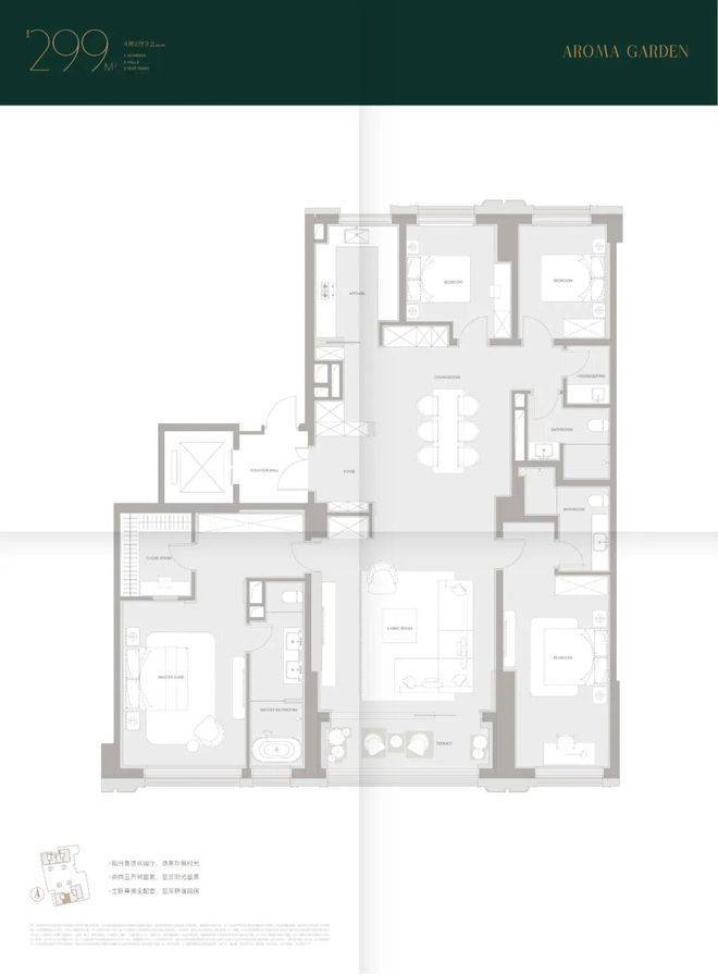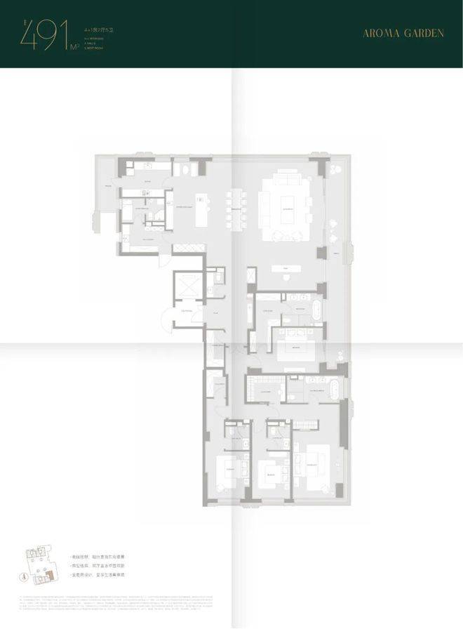 491㎡户型:南向面宽 26 米、双主卧、中西双厨、家政动线独立