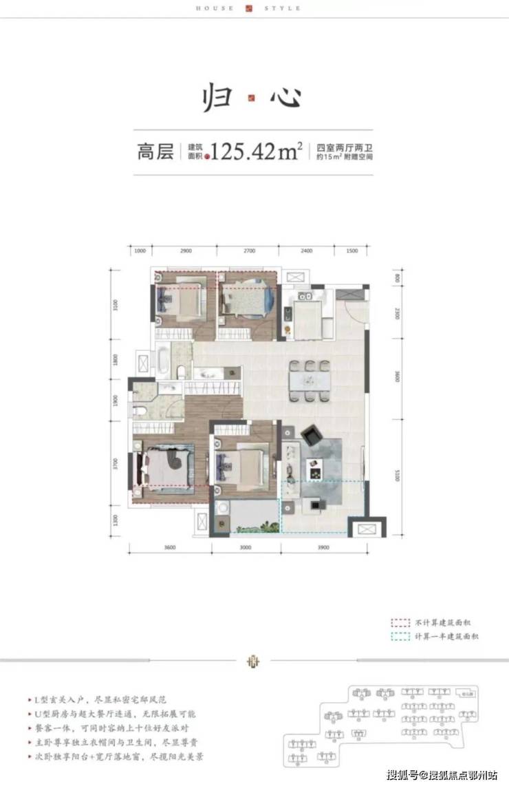 洋房:总高9F-10F,一梯两户,建面约125㎡