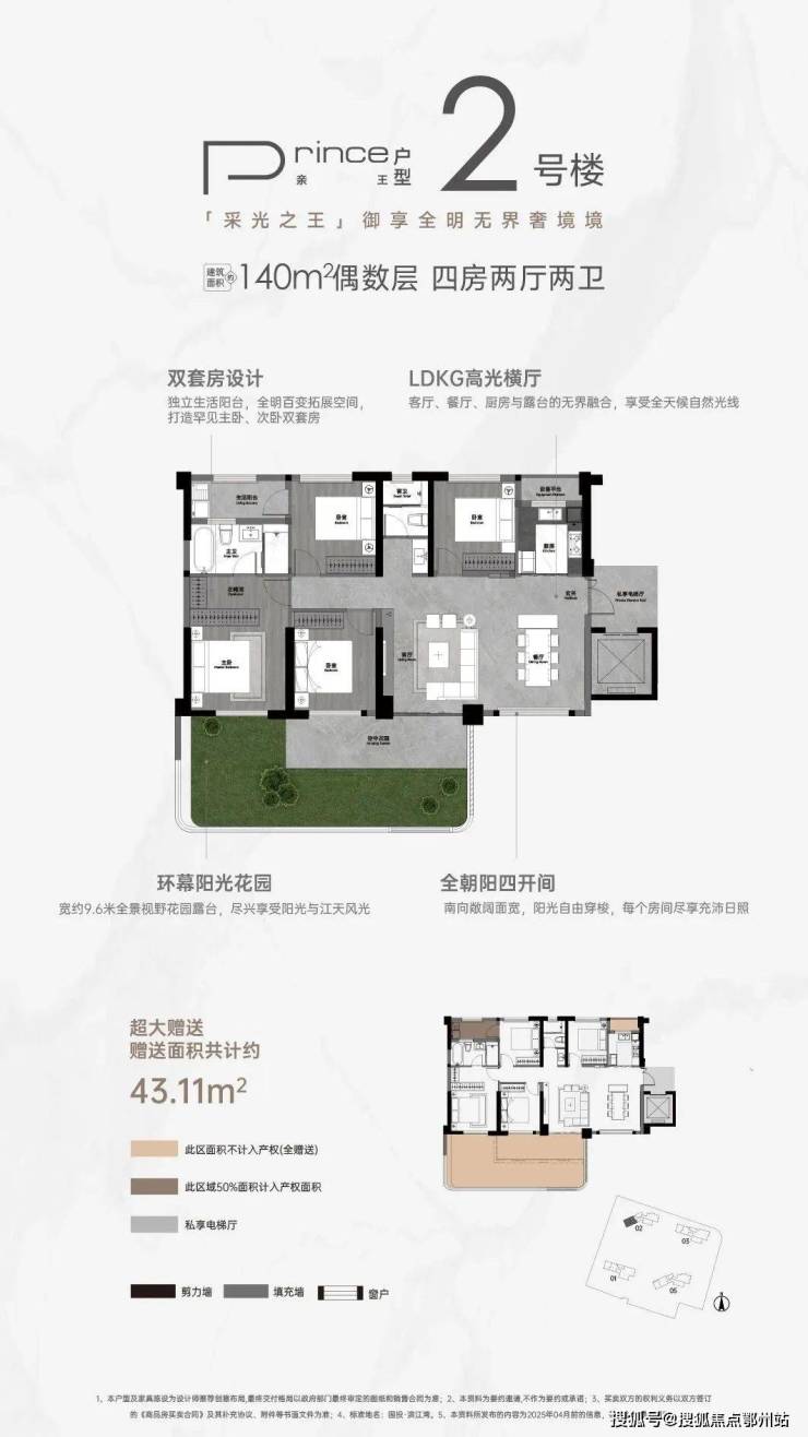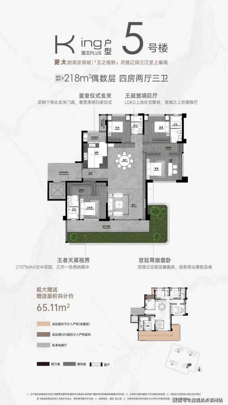 项目也是樊城区首个纯四代宅项目,从产品上看,推出户型建面 约140-218㎡ 江上院墅,采用 奇偶层错落 布局,层层享 最大约60㎡空中花园 以及 约110% 得房率。