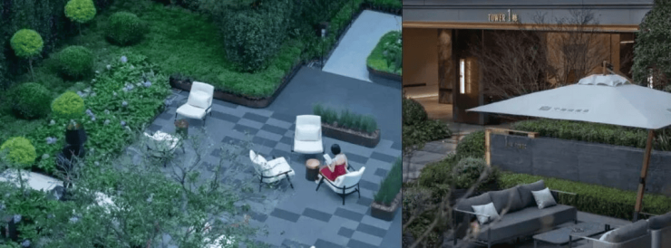 虽然社区只有四栋楼,但凭借高超的设计,打造了出色的多层次、组团化的景观: “一进二礼三聚四迎五享”归家礼序动线,「花汀缦庭」森林归家轴,「云幕会客厅」、「奇遇乐园」、「环笙花苑」宅间花园。