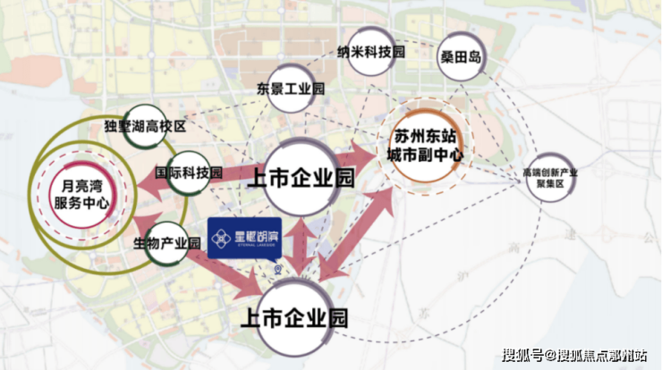 独墅未来城,承接北教(大学城)、东研(桑田岛)、南企(上市企业产业园),聚集33所中外知名高校(研究院)、15家“国家队”科研院所、