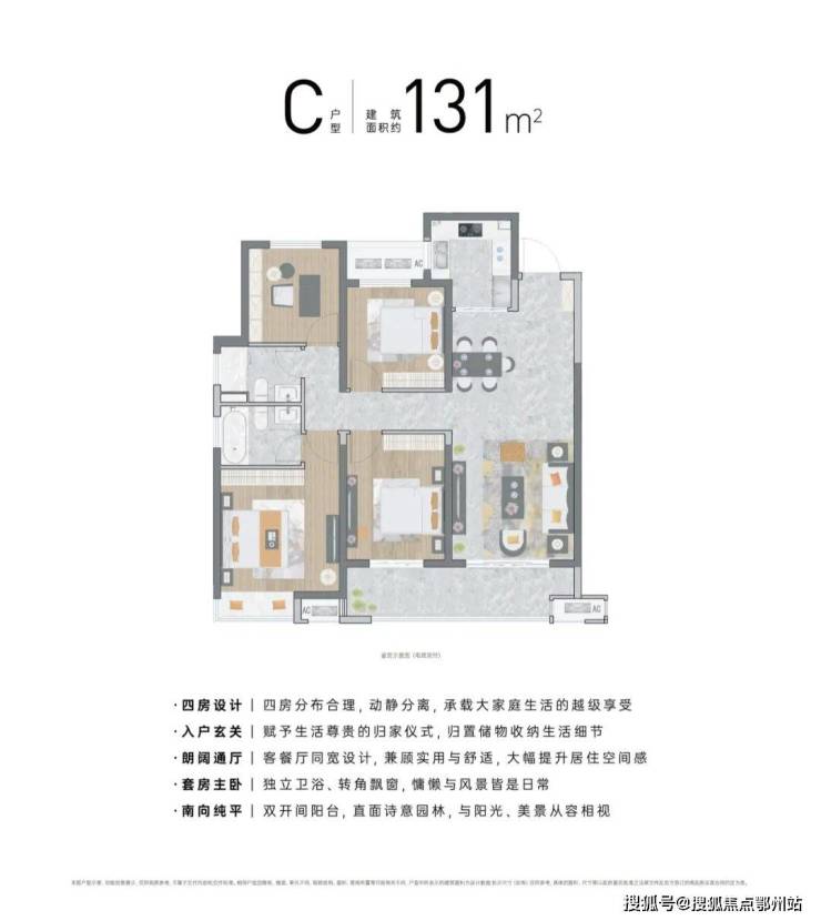 以建面约105㎡三房两厅两卫户型来看,起步即封神。