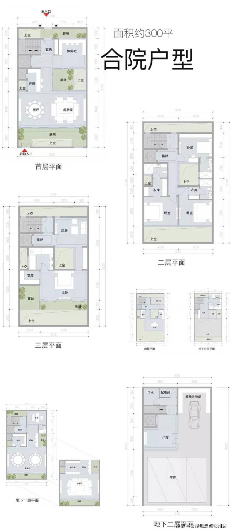 风貌联排合院:151套(建面约250-1200㎡,主力户型约300-500㎡)
