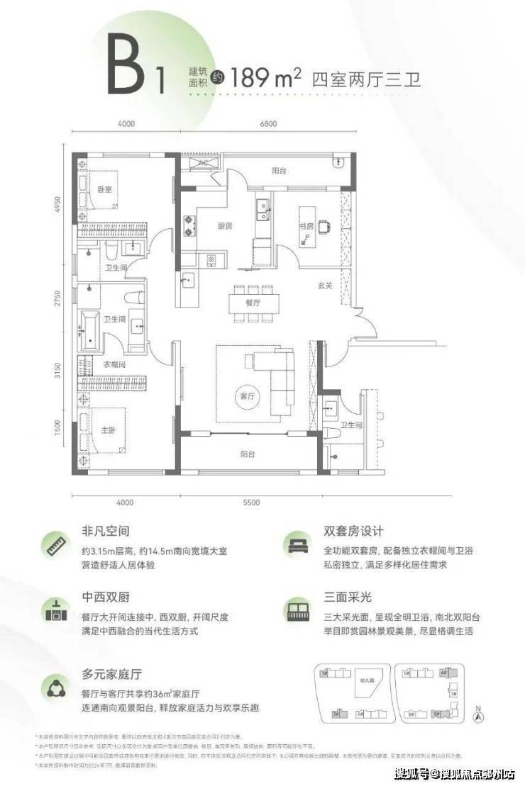 建面约189㎡的户型,功能性四房一步到位,南向视野无遮挡,三面采光,是多孩家庭的最优选。