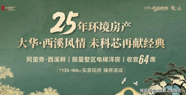 ,位于未来科技城1.0的超级大盘—大华西溪风情的最后2幢观止洋房(54#、55#)突发取证!共计64套房源,主力户型约135-166方,均价4.2684万/平。