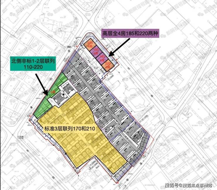 据悉, 项目高层全部为四房设计,面积为185/220㎡两个户型。联排面积约110-210㎡。