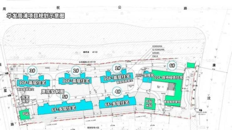 根据设计方案显示, 项目拟建3栋17F高层住宅、2栋6F多层住宅、1栋18-20F保障房+自持租赁住房以及若干社区配套用房,可售住宅仅约262套;同时从设计方案也可以看出,项目有预留14个地上车位,非完全人车分流,小区出入口位于康沈路和周星路。