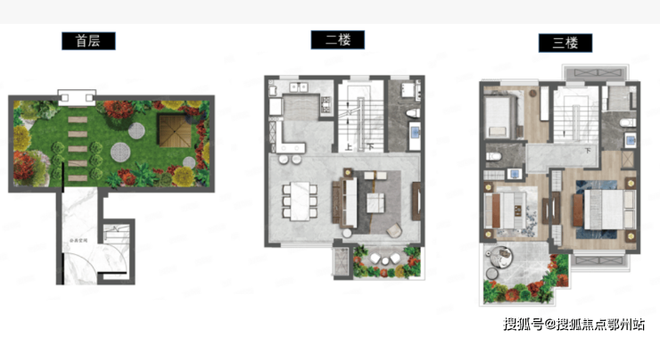(2)一层为会客区域,二层三层为起居区域;