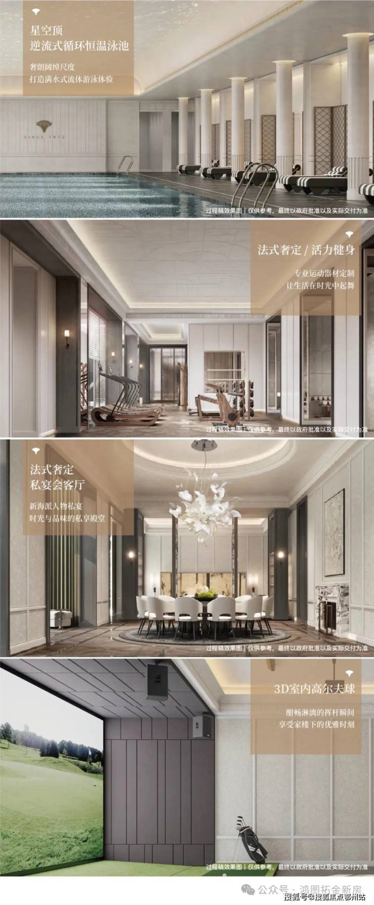 1️⃣834户家庭尊享2000方的会所空间:三泳道无边际泳池 / 专业健身区(定制沃特罗伦专业器材)/ 专业瑜伽区(专业瑜伽器械定制)/徐汇首个室内3D高尔夫 / 家族式私宴区