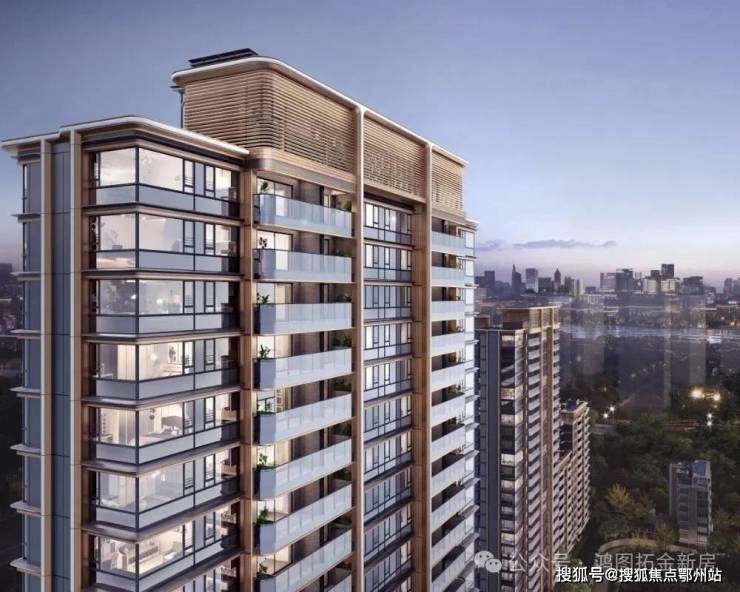 采用“金镶玉”设计理念,香槟金立面搭配大面积玻璃幕墙与香槟金格栅塔冠,公建化现代美学让人眼前一亮。
