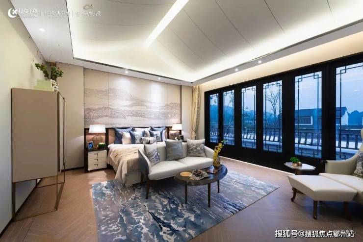 雅致主卧,集萃独立卫浴,走入式衣帽间,远眺胜景,阳光清风不请自来。三面环院风景,抬眼是远山如黛,低头的小池微澜。