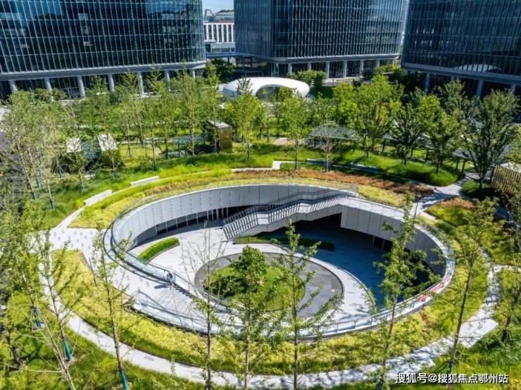 半室外的景观建筑空间以自然与艺术的语言,打造轻松交流的场所精神地标,为园区注入独特气质。