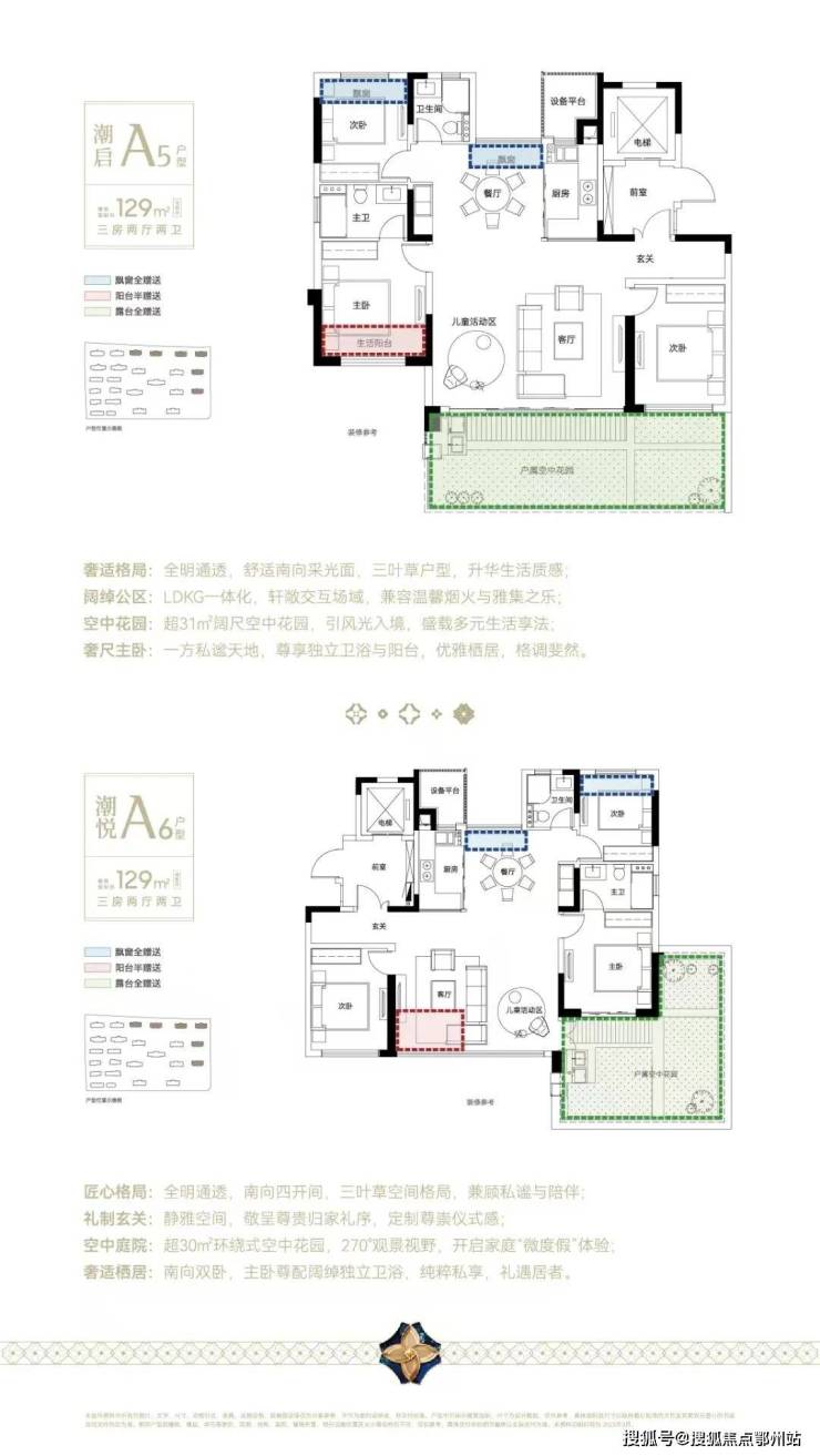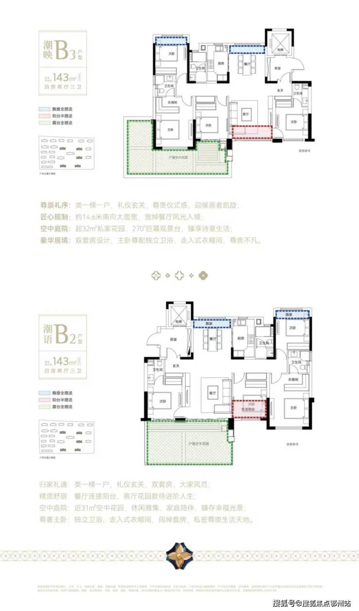 户户四开间朝南,巨幕采光面,赠送 约30-80㎡空中花园,部分户型拥有约270°空中花园。