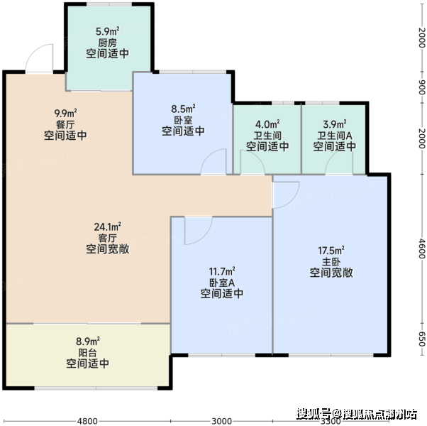 建面约173㎡户型,是天汇热销的改善型房源之一。