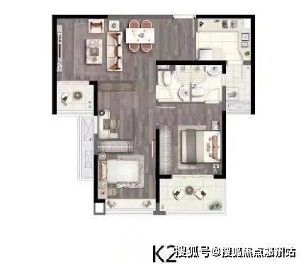 9-10-13-14号楼中间套,89㎡3房2厅2卫,总高18层(两梯三户),共72套。