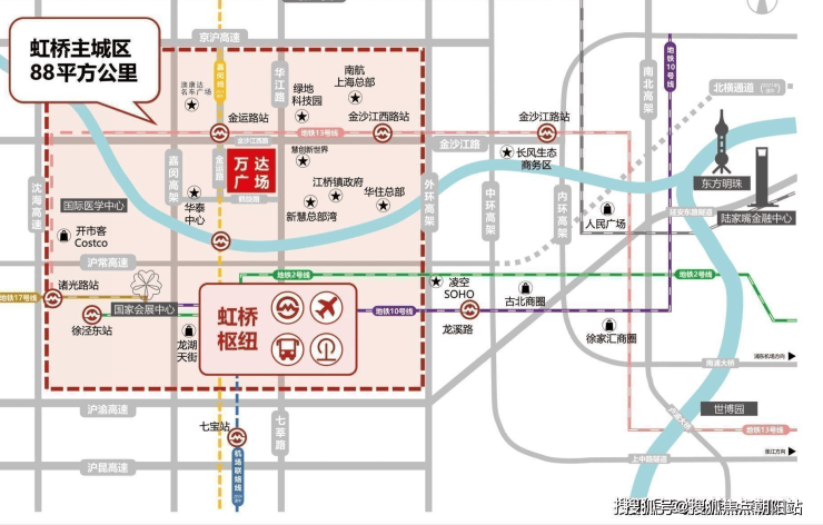 2️⃣:区位优势:虹桥主城区内,企业总部聚集地。北虹桥核心位置。项目周边200米内未来50+企业总部。