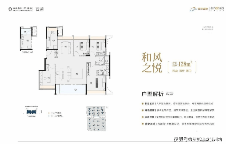 项目洋房 建面约128㎡户型已经触摸到高改层级,空间感堪比市面上150㎡以上户型;